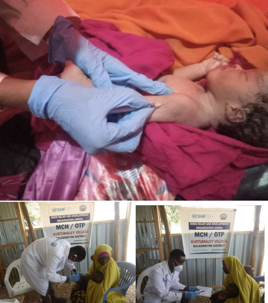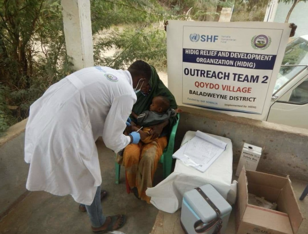 In response to the above need HIDIG organization have been partner with Somalia Humanitarian funds (SHF) and have been actively undertaking the vaccination/immunization services to these vulnerable population across the five-target health and nutrition services while also ensuring the same population have access to free outpatient consultations and outpatient therapeutic treatment hence the beneficiaries were reach with multi sectoral services.