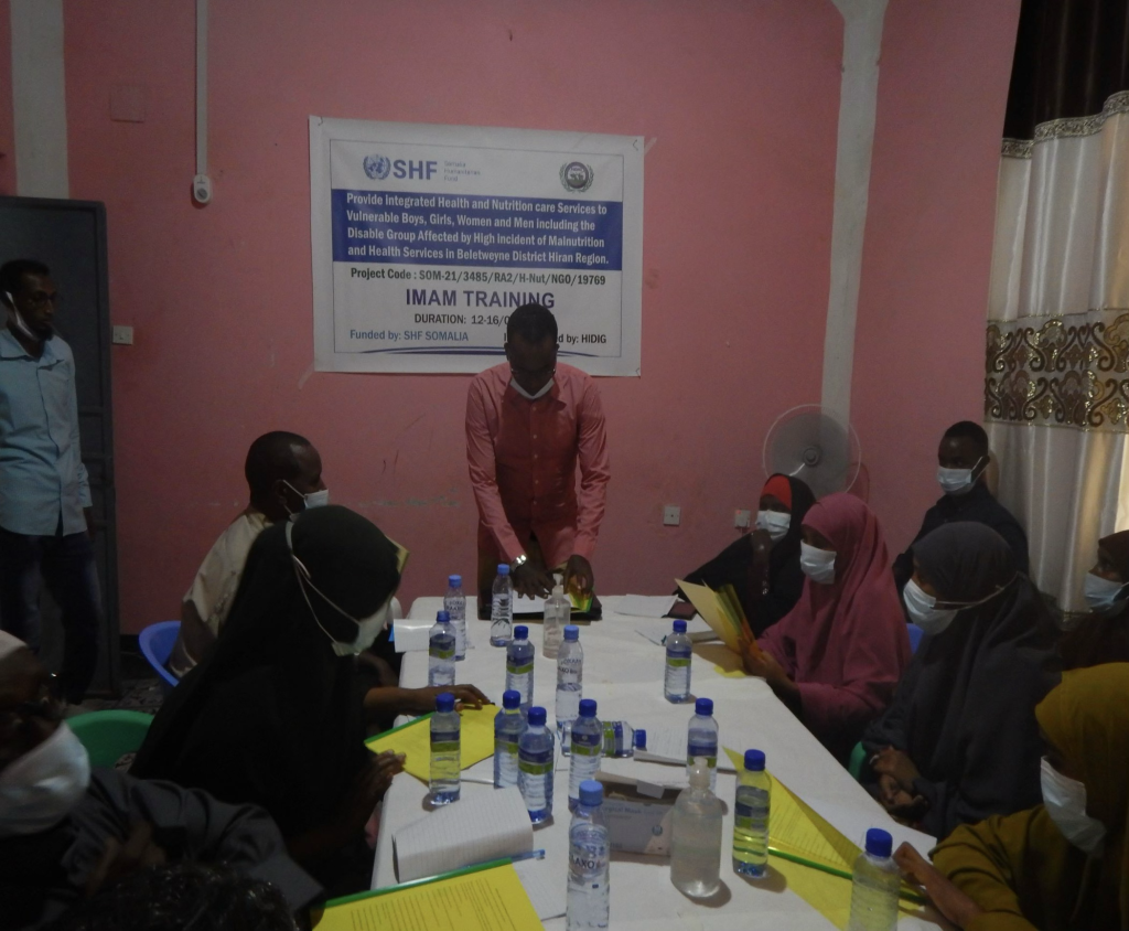 HIDIG conducted IMAM training for key nutrition program staff and community health workers in Baladweyne District Hiran Region of Southern Somalia. The nutrition staff received the 5 days IMAM Nutrition training.The training is part of a larger capacity building program that is funded by SHF Somalia and redesigned to suit nutrition staff needs in the wake of the current program in Somalia. Basically, the training followed the Guidelines for managing malnutrition in Somalia, however it was tailor made for nutrition staff offered in Somali and trainings materials were developed by HIDIG program manager with inputs from SHF field team.