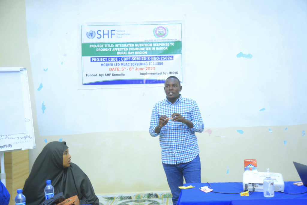 The Humanitarian Initiative for Development in Governance (HIDIG) conducted a comprehensive five-day Mother Lead MUAC Training in Baidoa district, Bay region of South West Somalia. The training was tailored for key Nutrition program staff, community health workers, community members, and local administrators. The primary objective was to provide insight into Mother Lead MUAC Training, enhancing the capacity of field staff in the nutrition sector. Additionally, the training aimed to underscore the importance of integrating Mother Lead MUAC Training into both non-emergency and emergency contexts, fostering robust operational action plans among the involved personnel to ensure theory translates into practice.